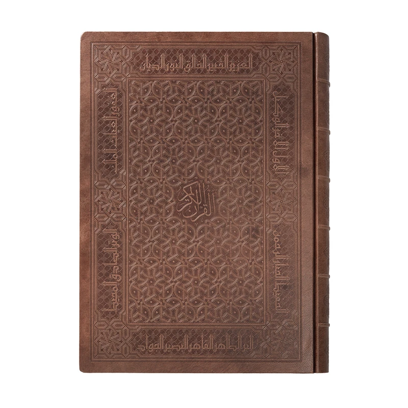 سایر توضیحات: اندازه: ۴۱ × ۲۹ سانتیمتر، نوع کاغذ: گلاسه ۱۳۵ گرمی مات، تعداد رنگ: هفت الی هشت رنگ، قطع: دو رحلی، نوع صحافی: ته دوخت با جلد چرم تیماج سوخت